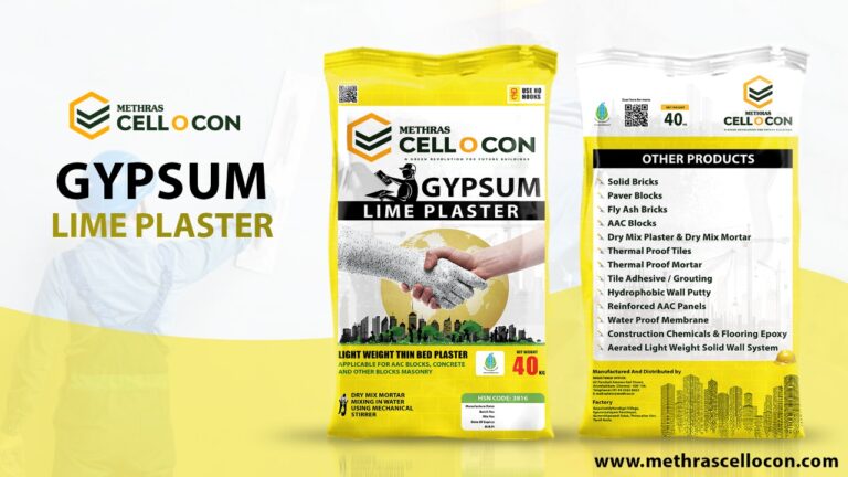 Gypsum Plaster is a cementing materials widely used in construction industry. It is created by partial or full dehydration of gypsum added with added retarders and hardeners. It is applied after adding water and bring to a plastic state, it sets and hardens by the chemical combination of gypsum and water. Cell O Con Gypsum plaster can be done over bricks, blocks are concrete to get a smooth finish. In early days, plastering was a two-step process cement plastering and gypsum plastering. After many technology improvements now it is a single step process. Water is added with the plaster and apply directly where plastering is required.